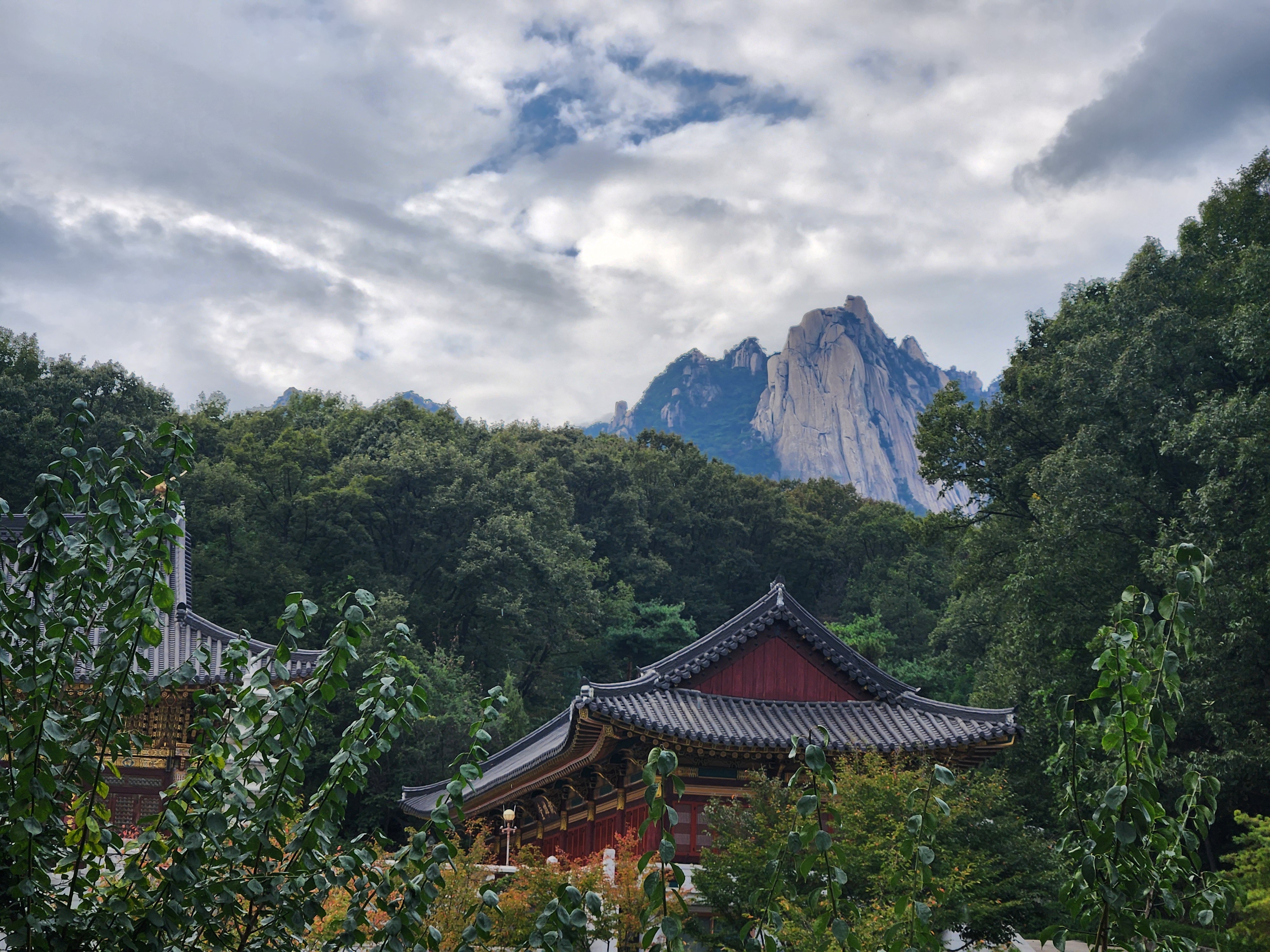 느티나무 뒤로 우이암이 멋지게 서 있었고요.