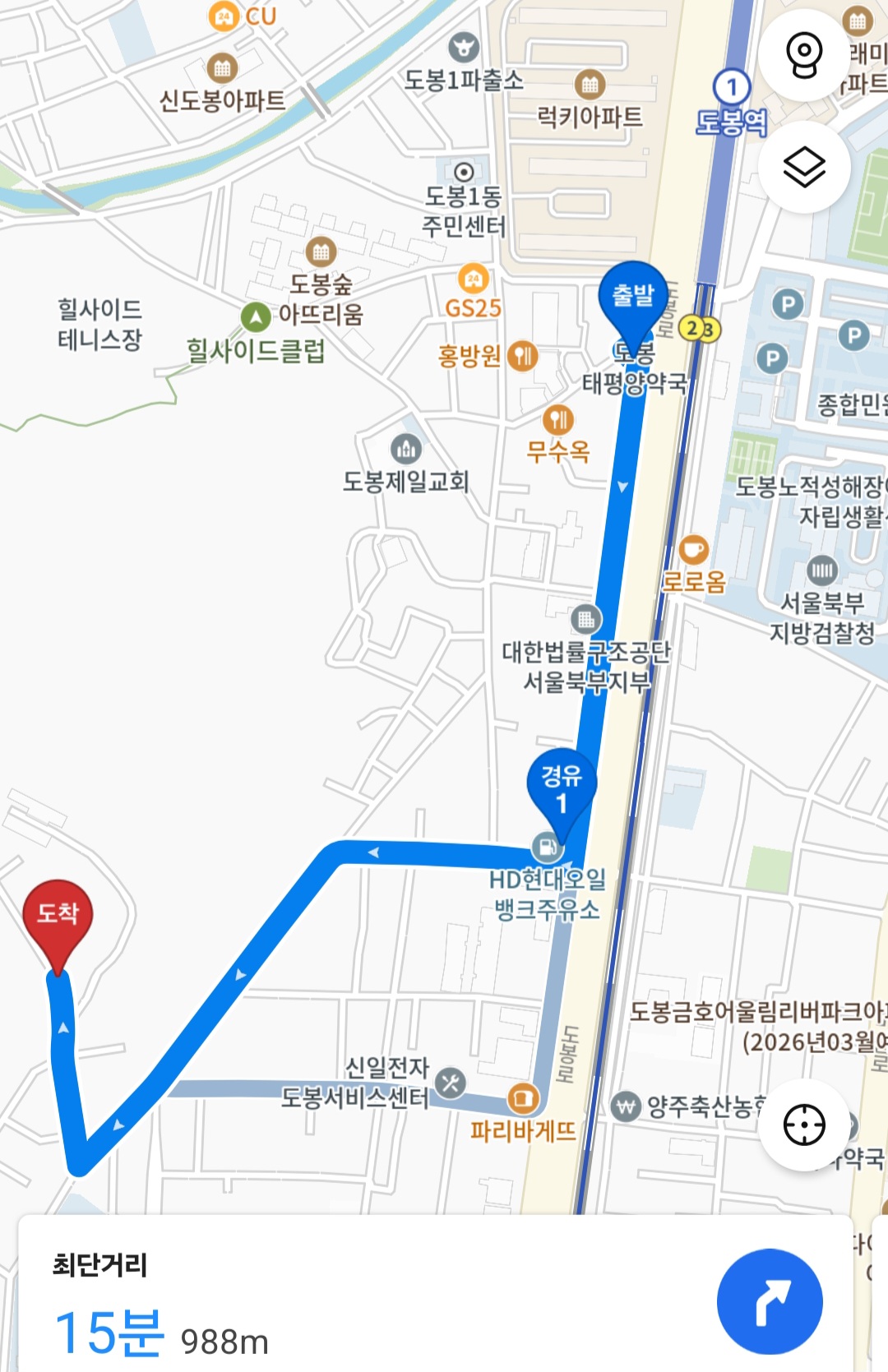다시 동그라미 삼거리에서 우회전를 하면, 이내 도봉맨션이 나타나고요.