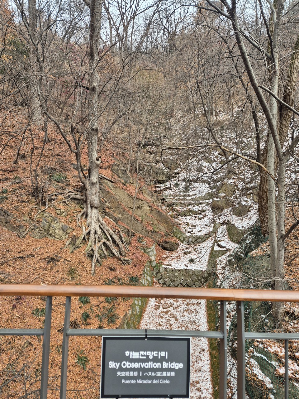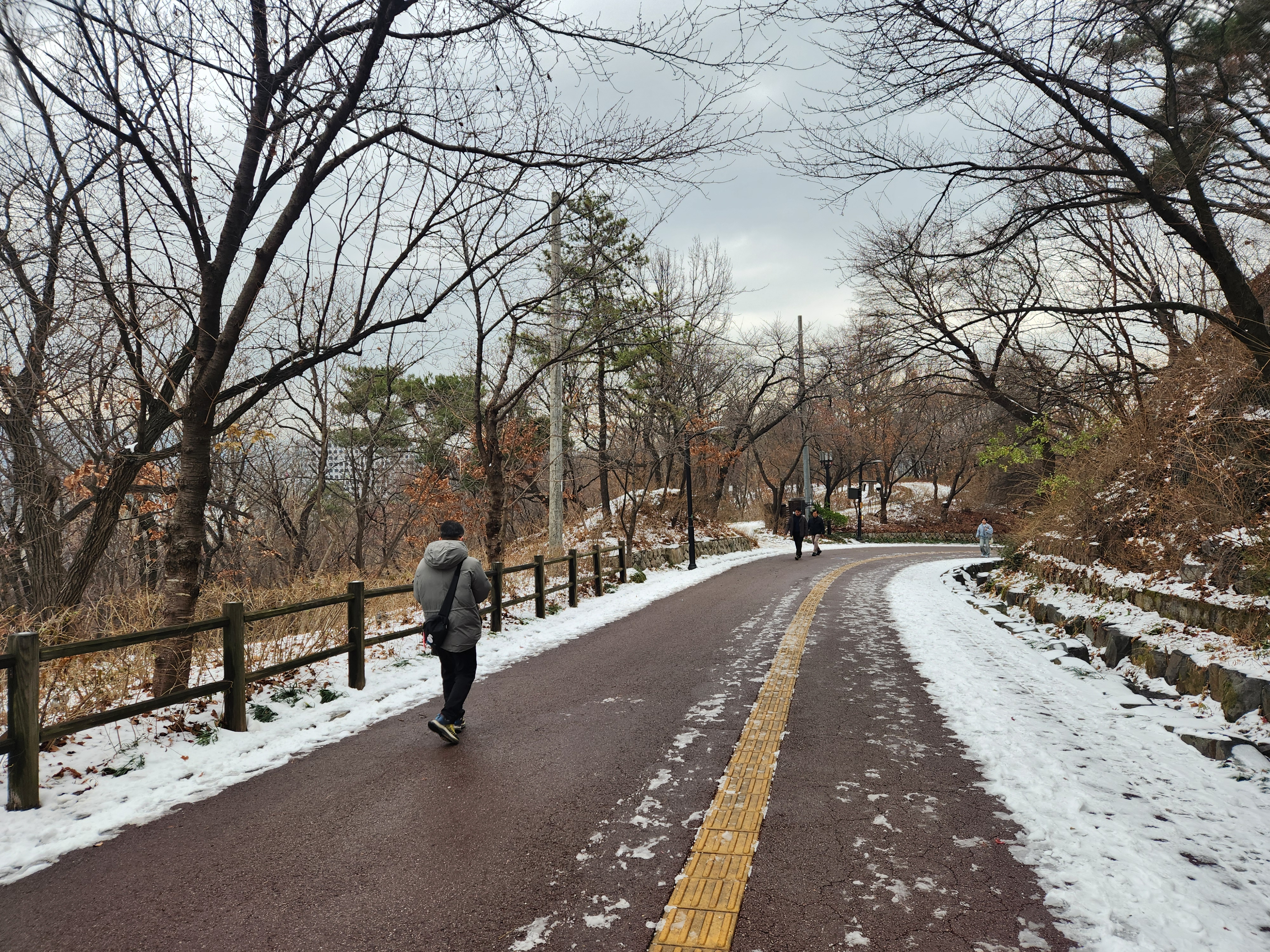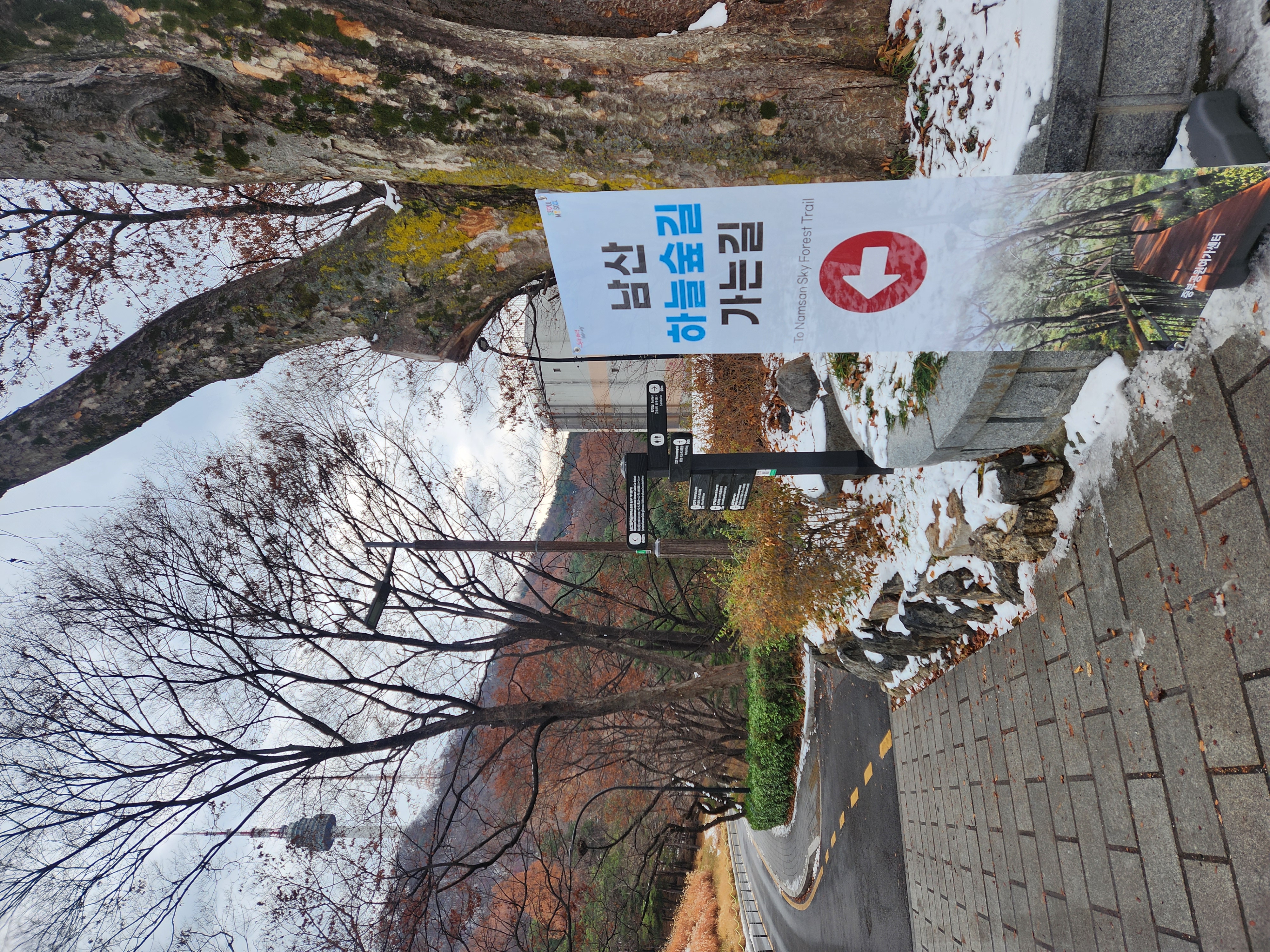 가을 단풍이 아름다웠을 지난 10월 25일 개방한 무장애 데크길 1.63km(무장애 데크 1.45km) '남산 하늘숲길'을 첫눈이 내린 다음에야 걸어 봤습니다.^&^