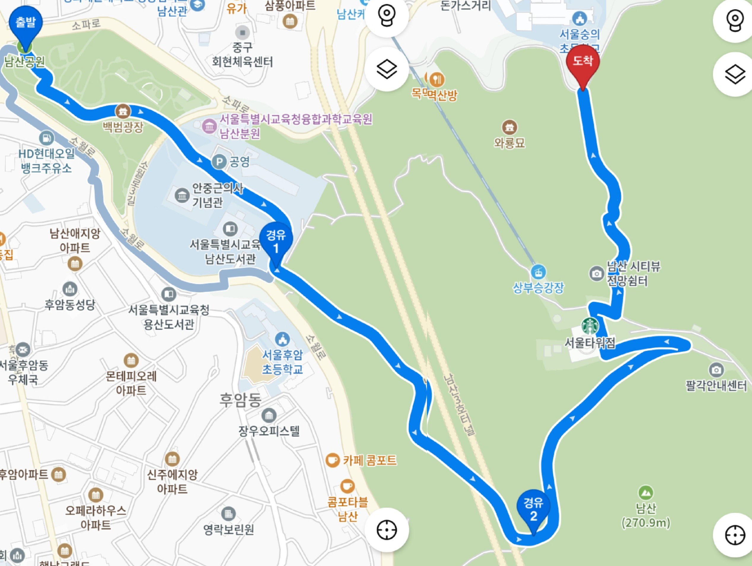 남산 북측 숲길 하산 완료..